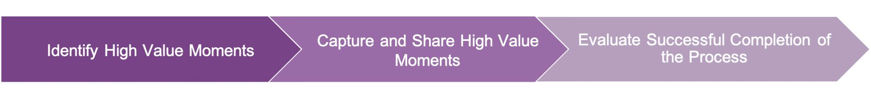 Identify High Value Moments. Capture and Share High Value Moments. Evaluate Successful Completion of the Process.